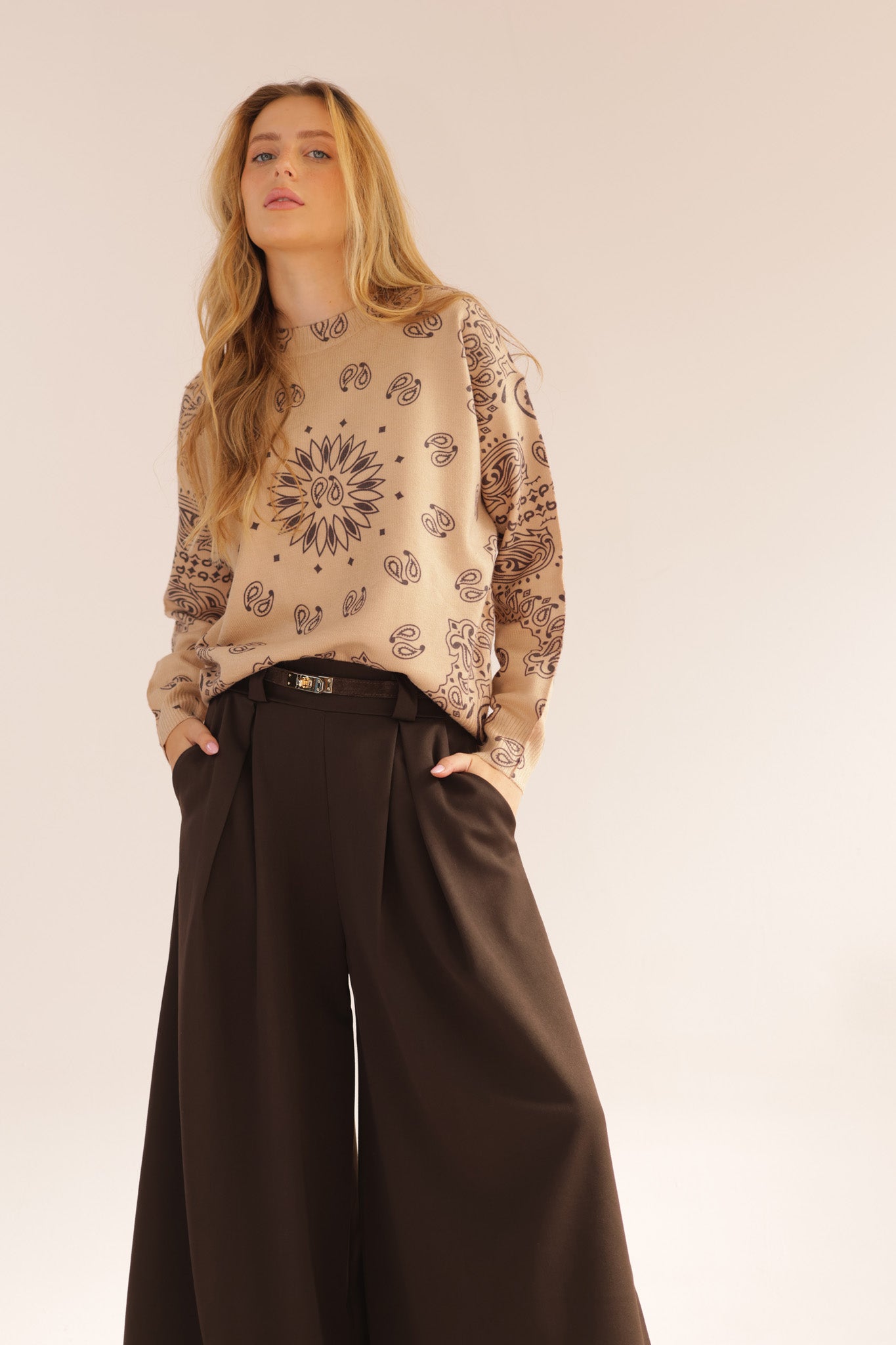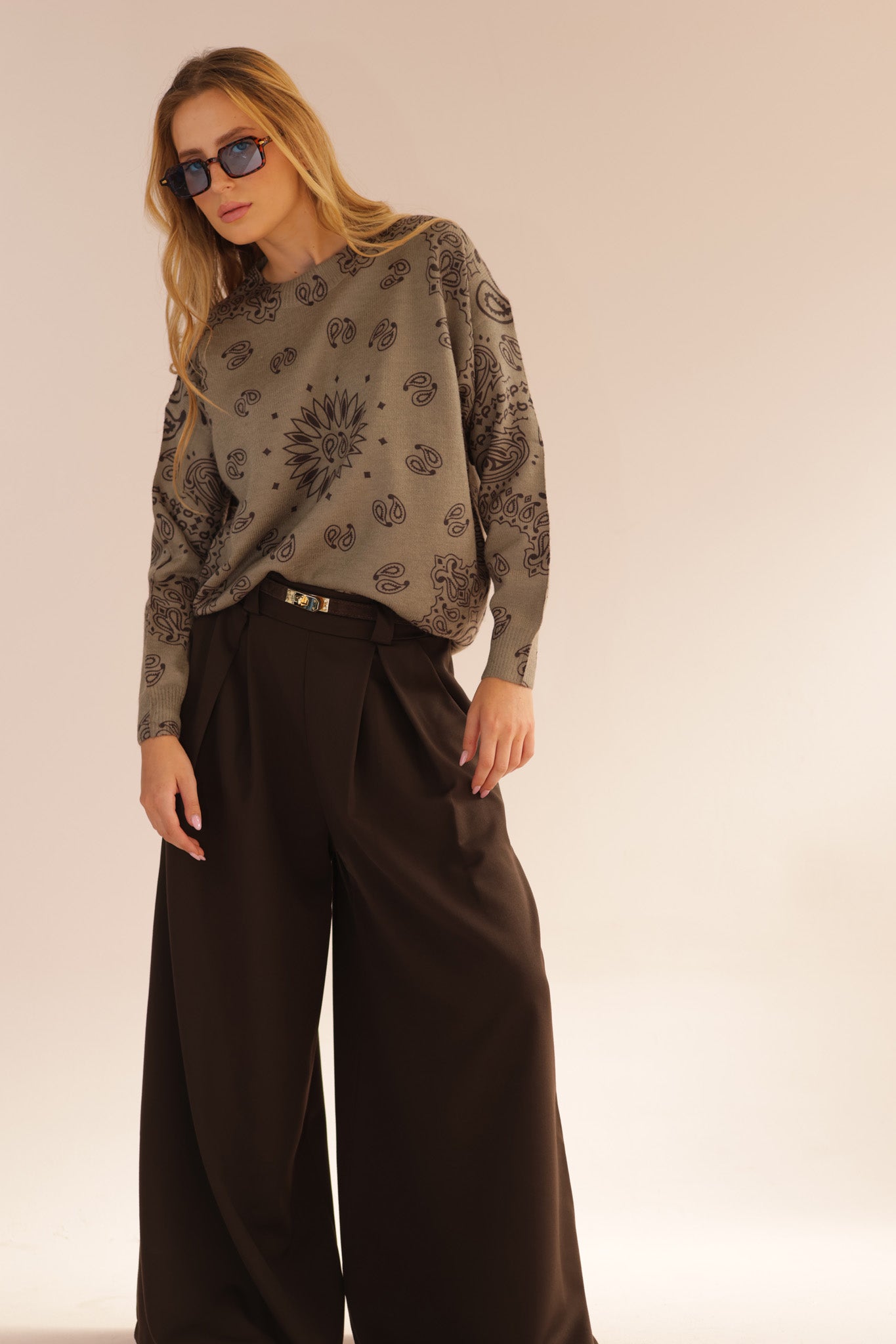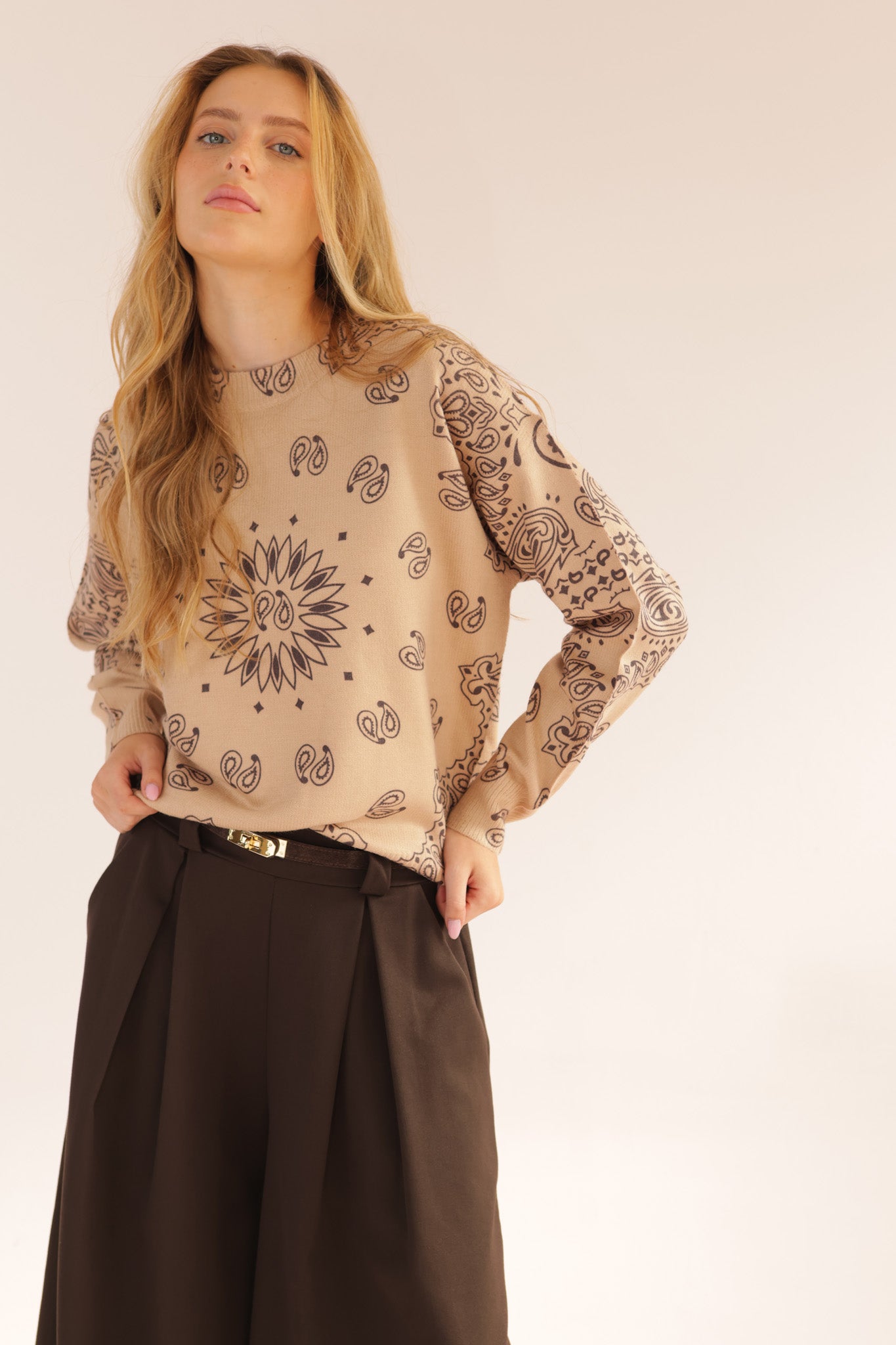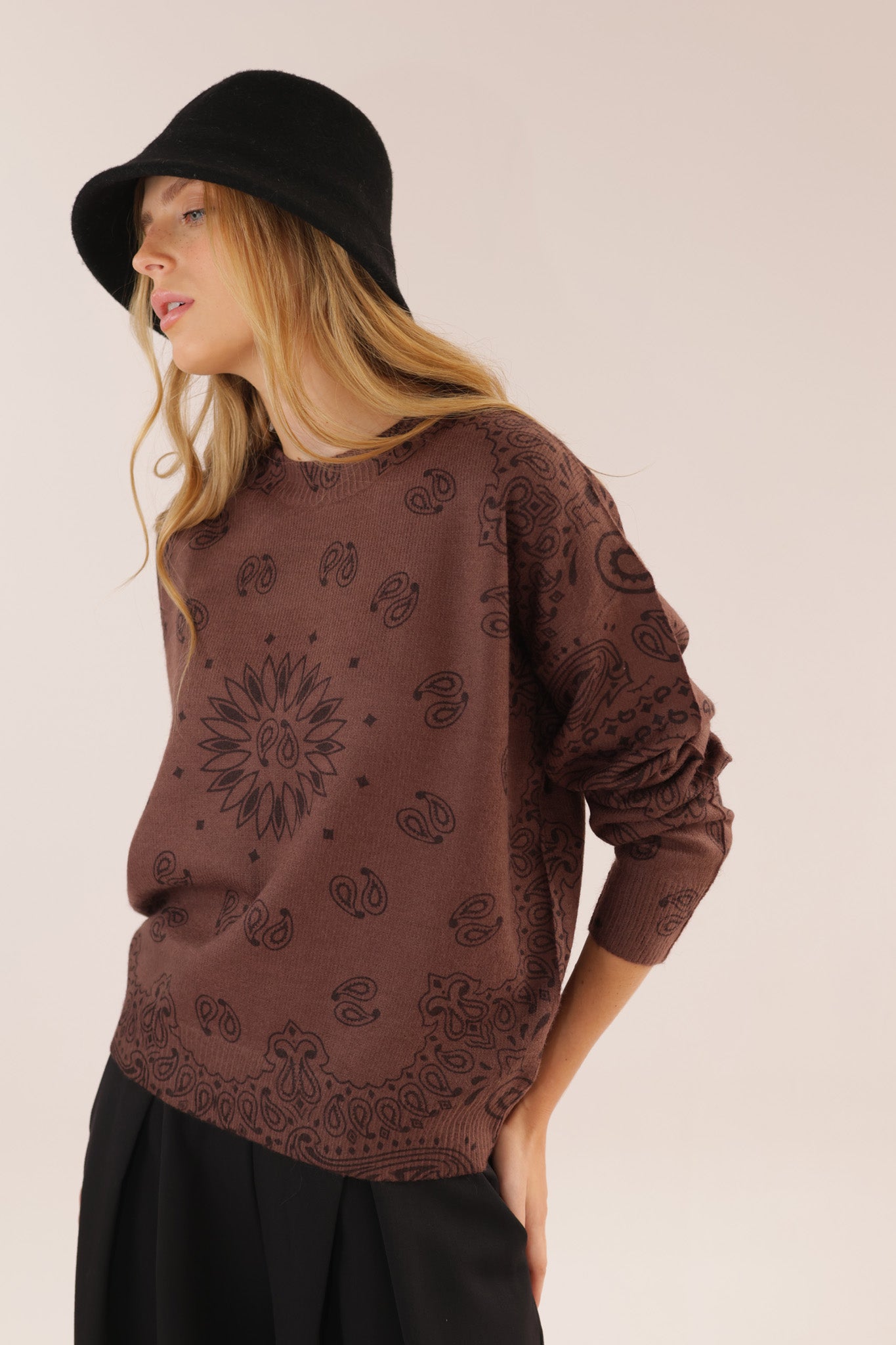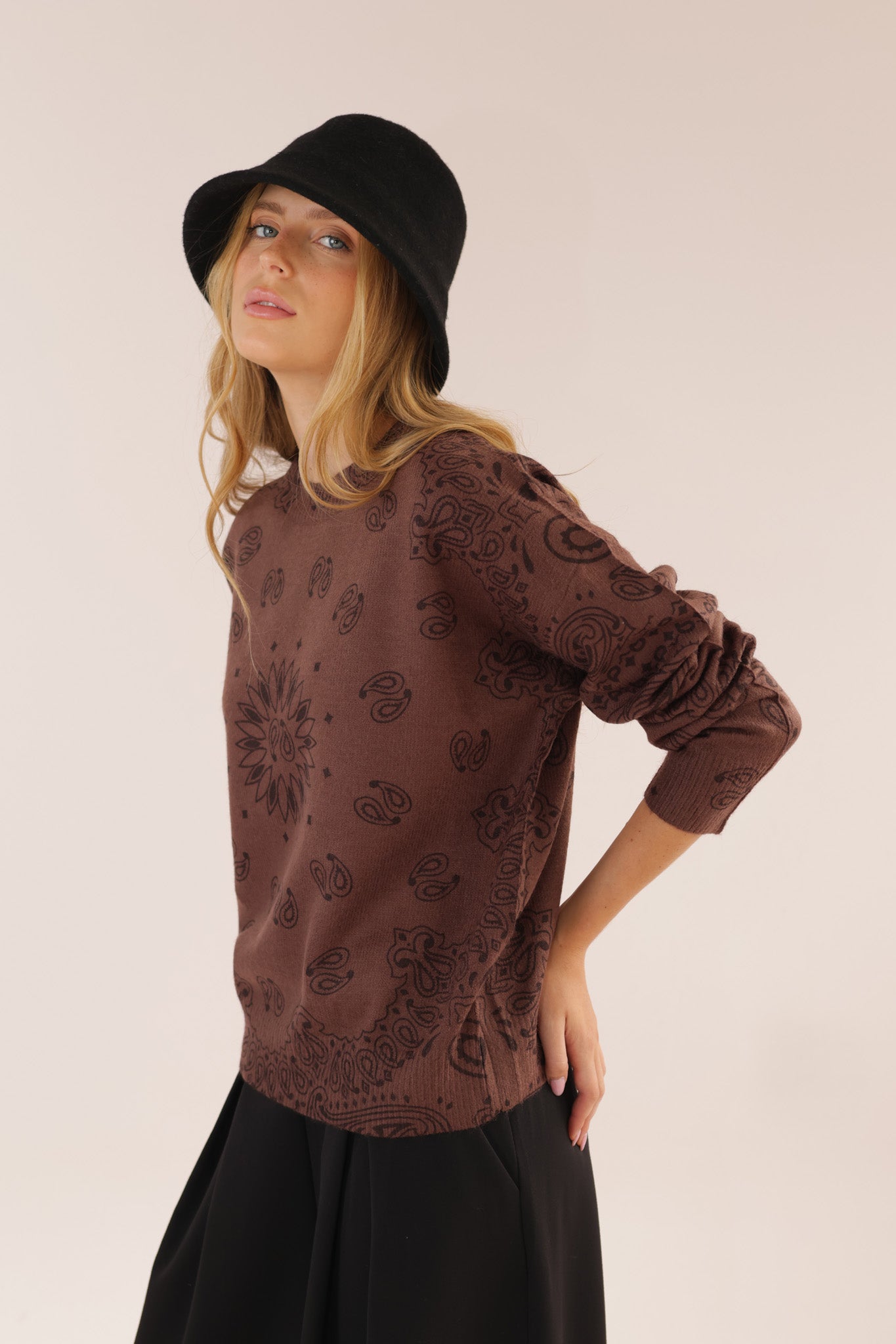 ROUND CASHMERE PRINT KNIT