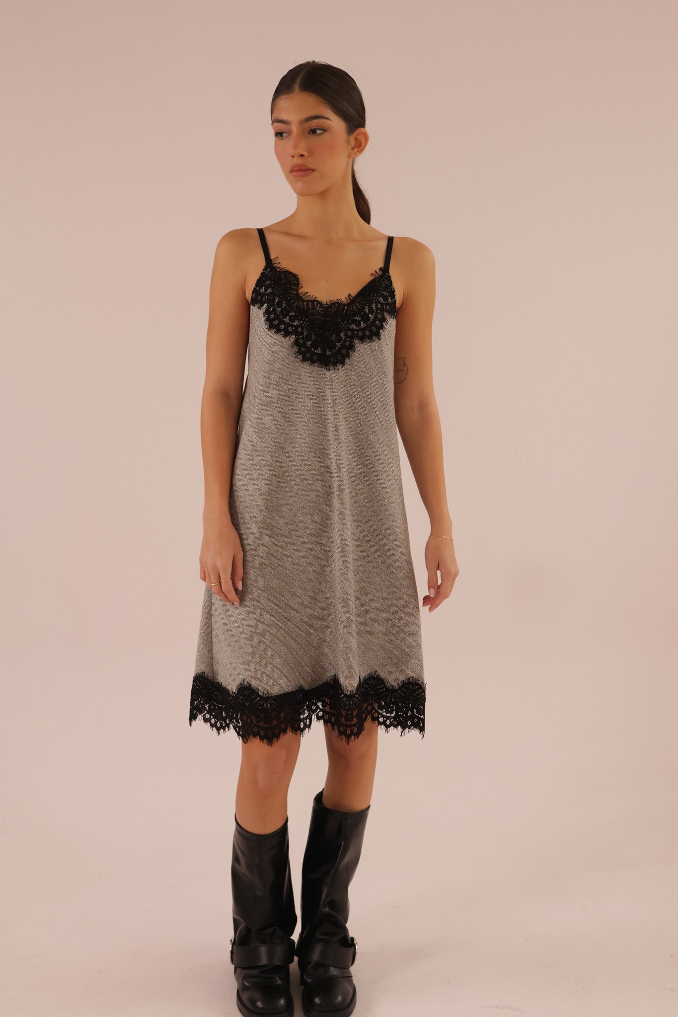 SHORT WOOL TANK DRESS – Short wool dress with a tank-style cut.
