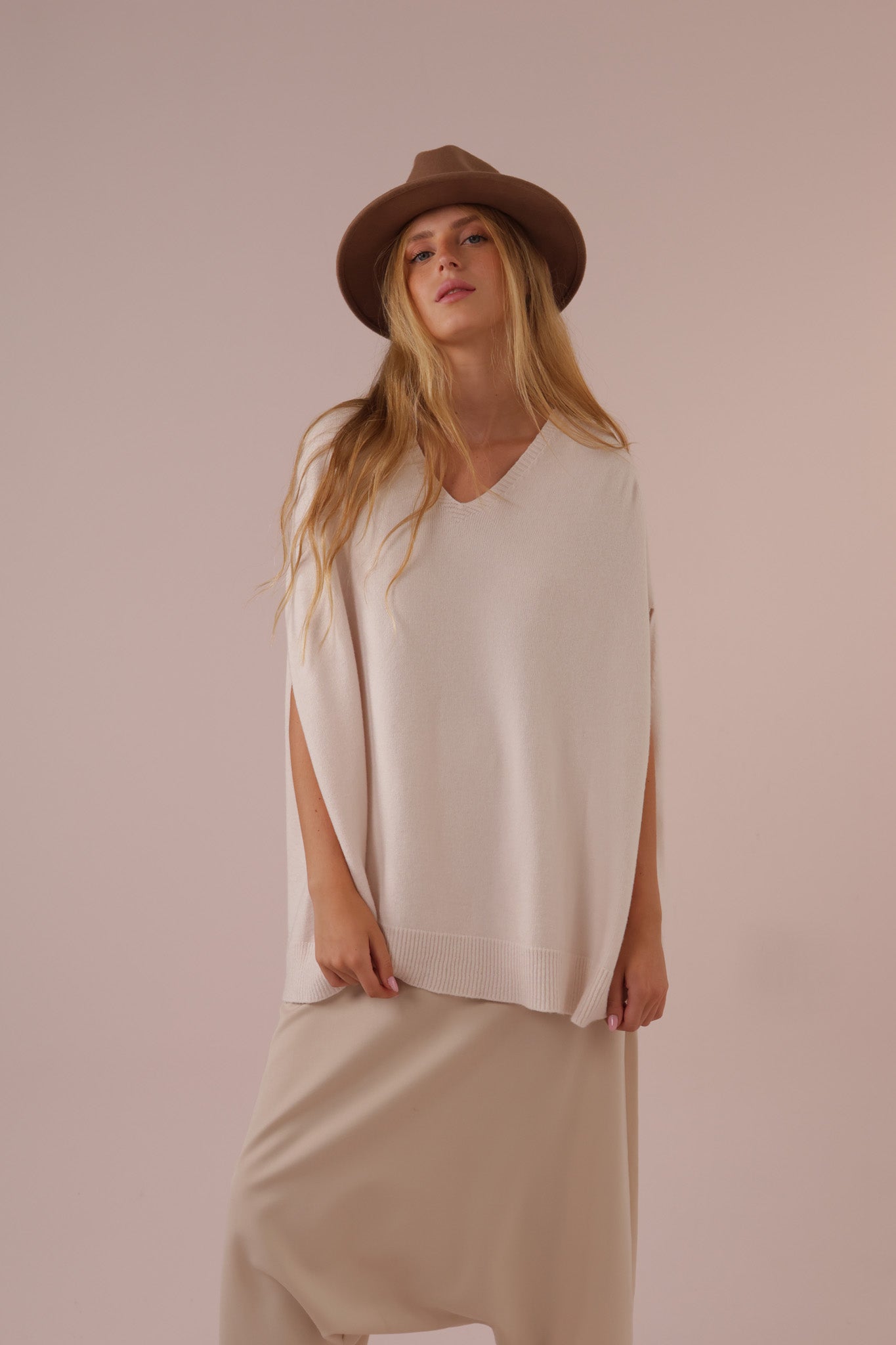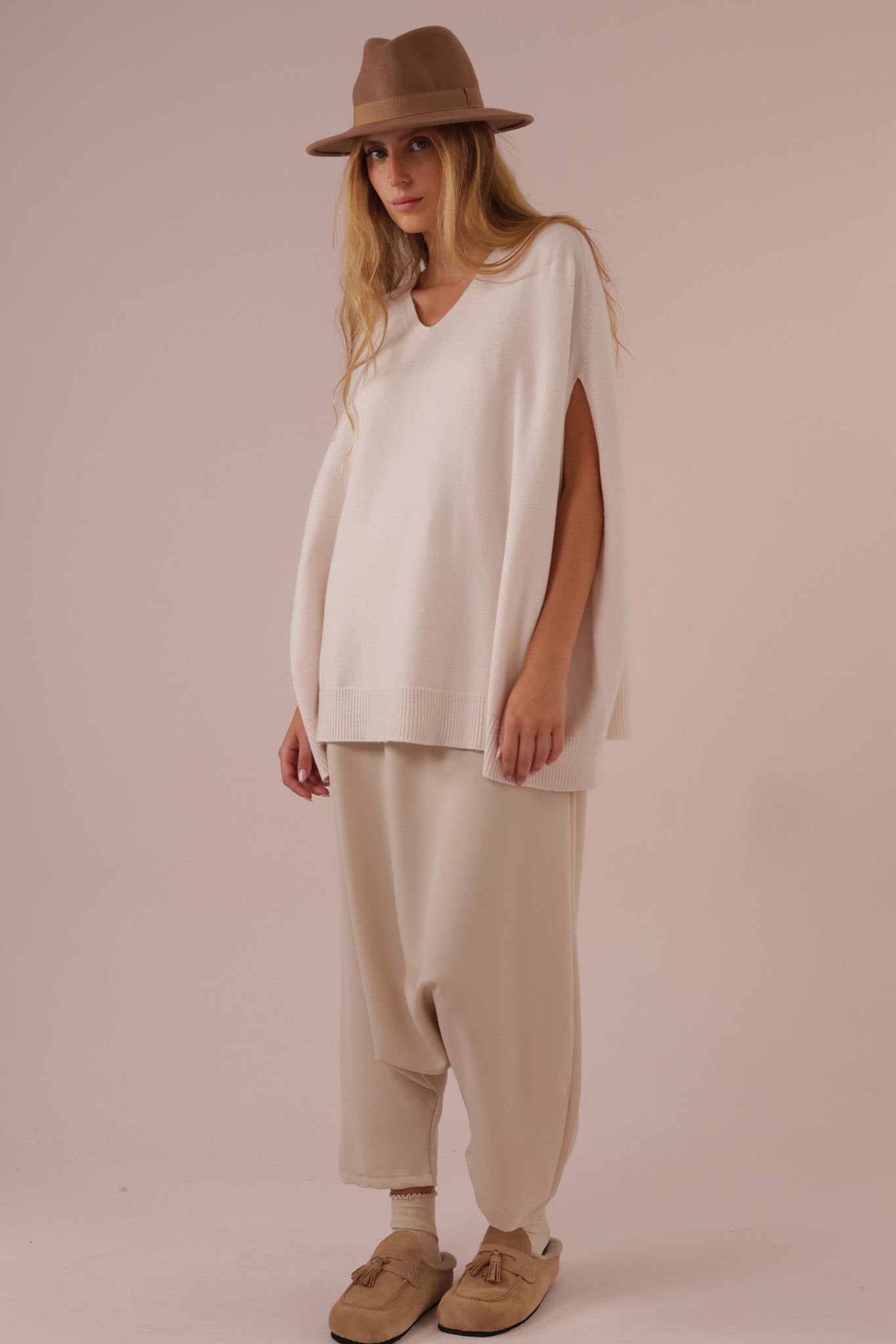 V OVERSIZED NO SLEEV KNIT – A modern twist on classic knitwear.