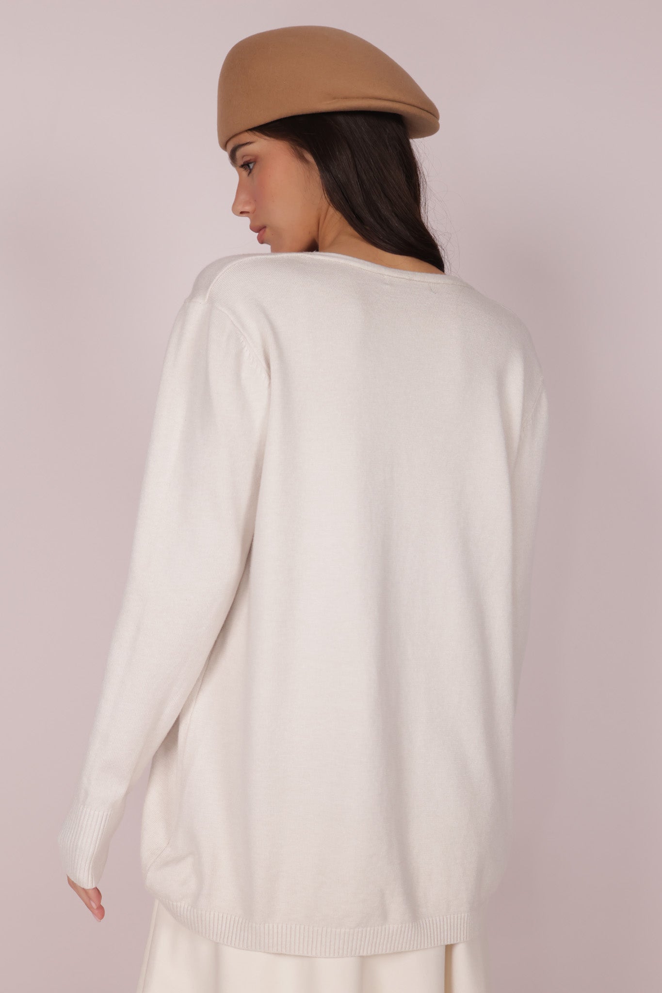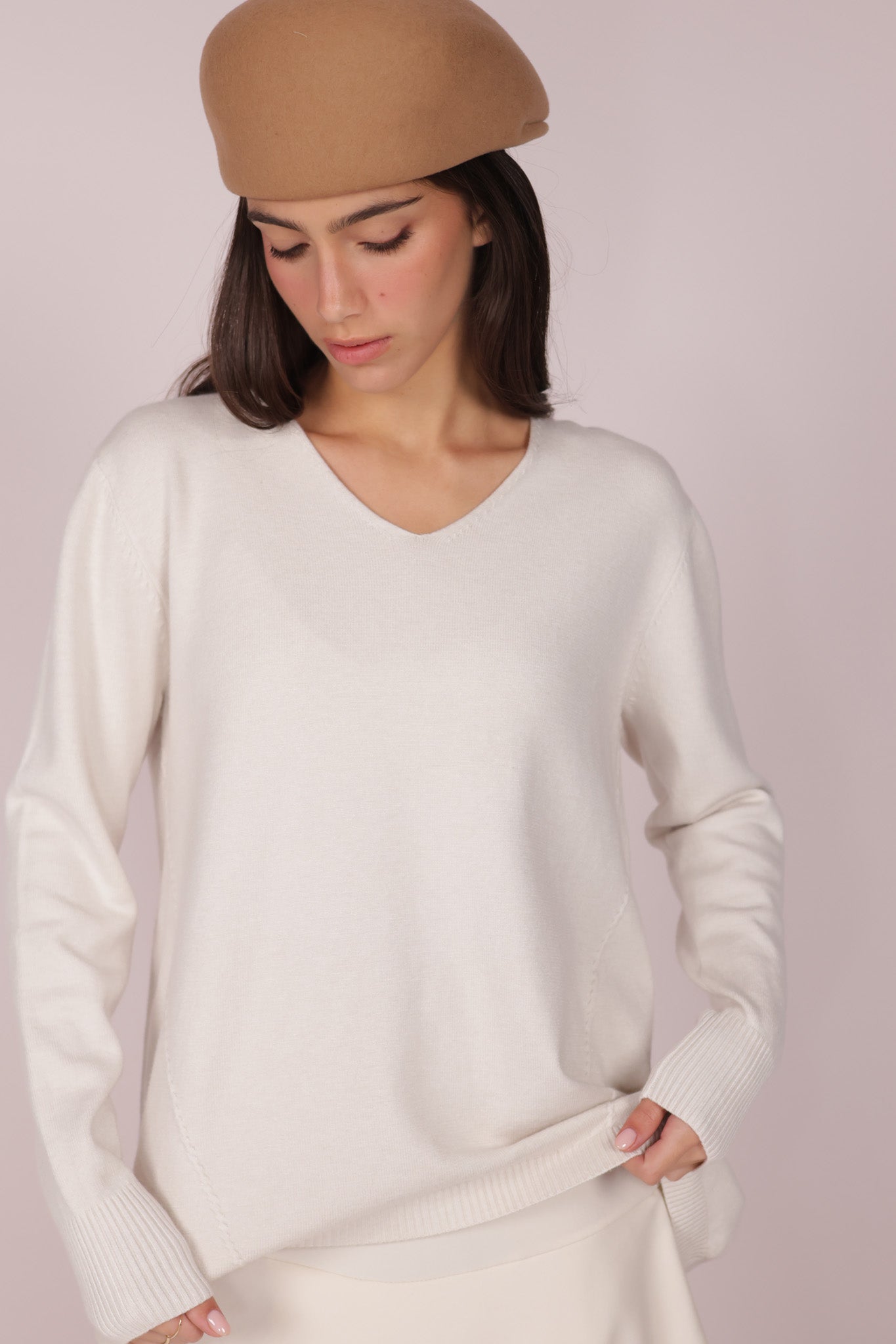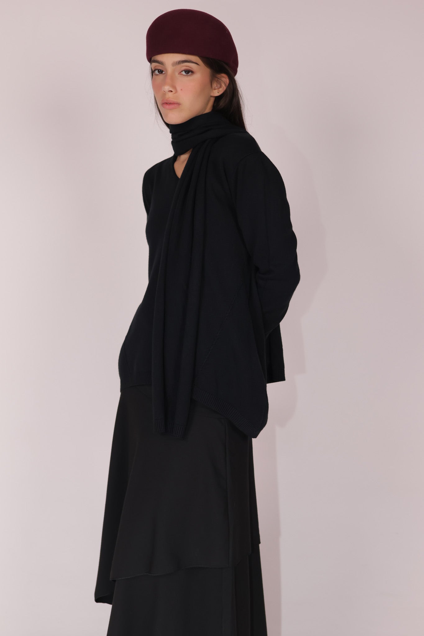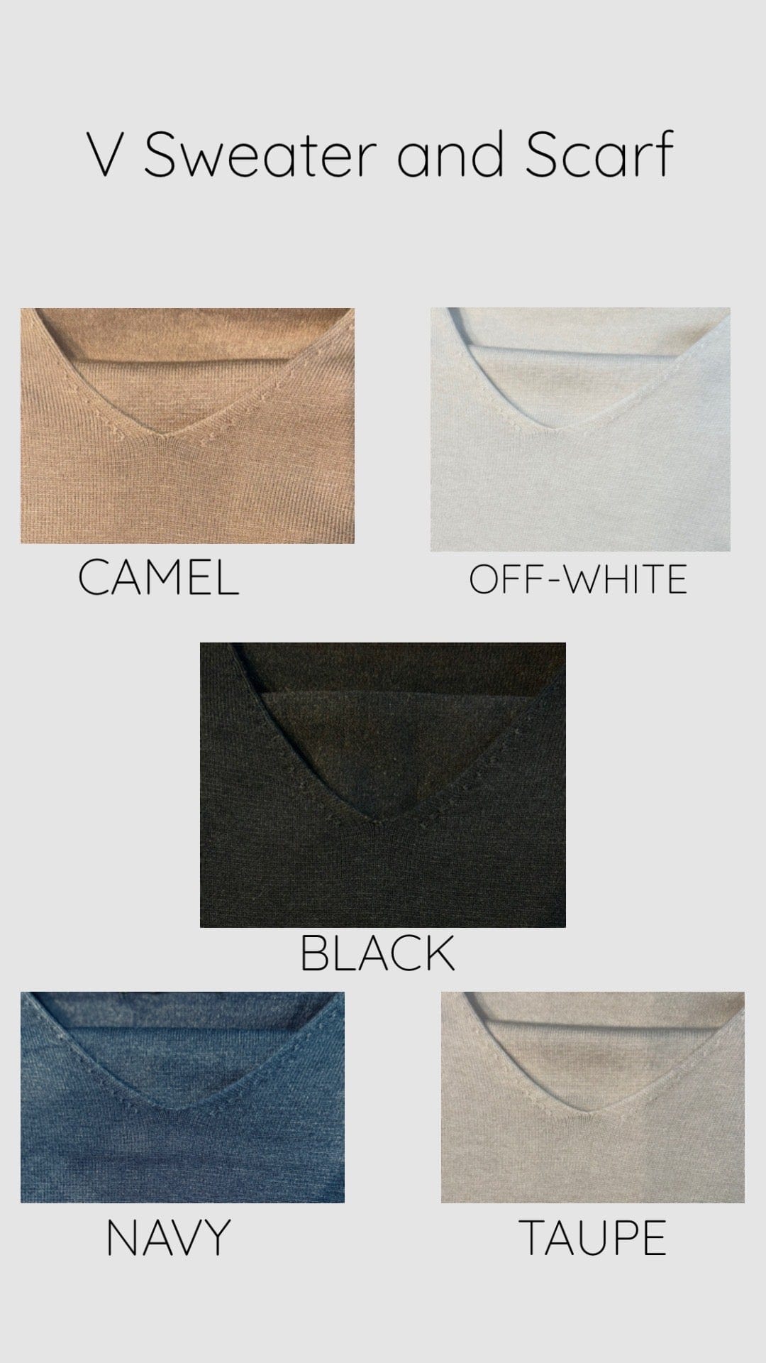 V SWEATER AND SCARF –V-neck sweater with matching scarf